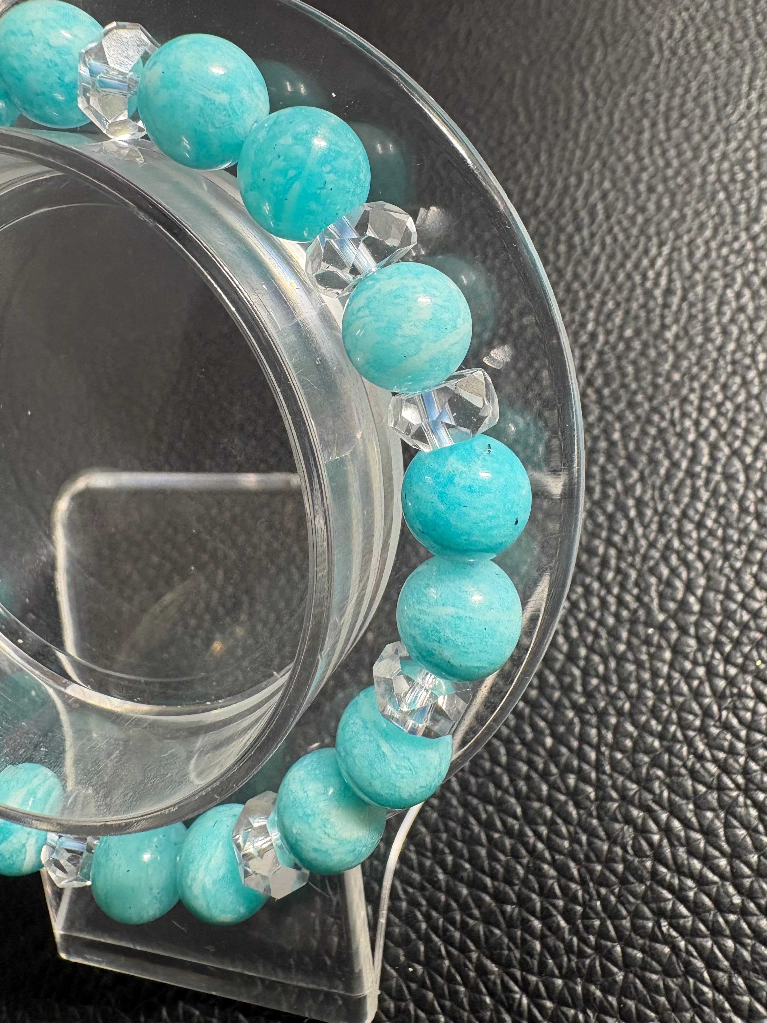 爽やかなミントブルーが魅力のアマゾナイトに、キラリと輝くカットクリスタルを組み合わせたナチュラルで上品なデザインブレスレットです✨