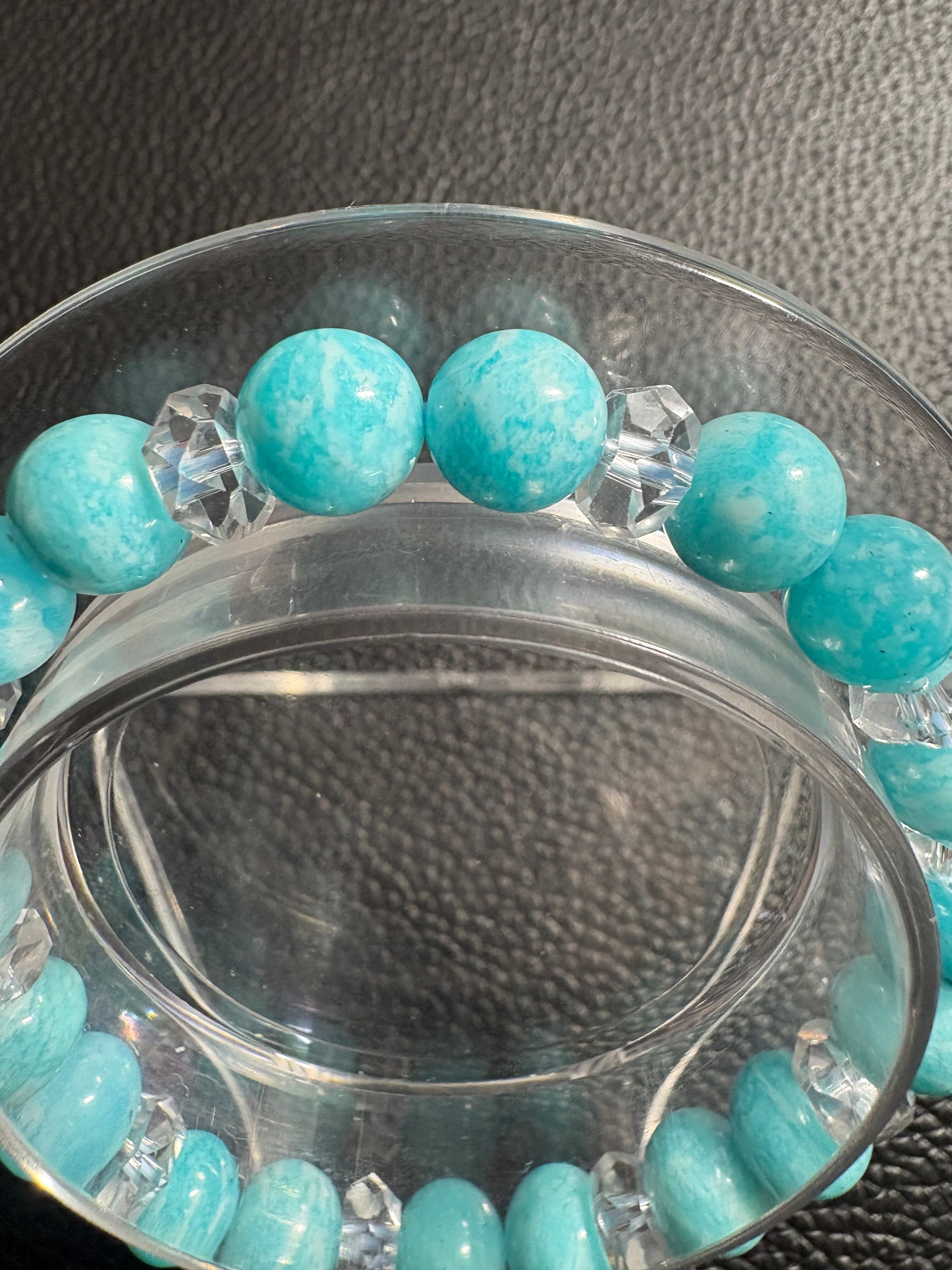 ✨希望のミントブルーアマゾナイト✖️カットクリスタル✨ サイズ8.3ミリ 内径16㎝ ※フォローして頂き、10%OFFクーポンをご利用下さい☆