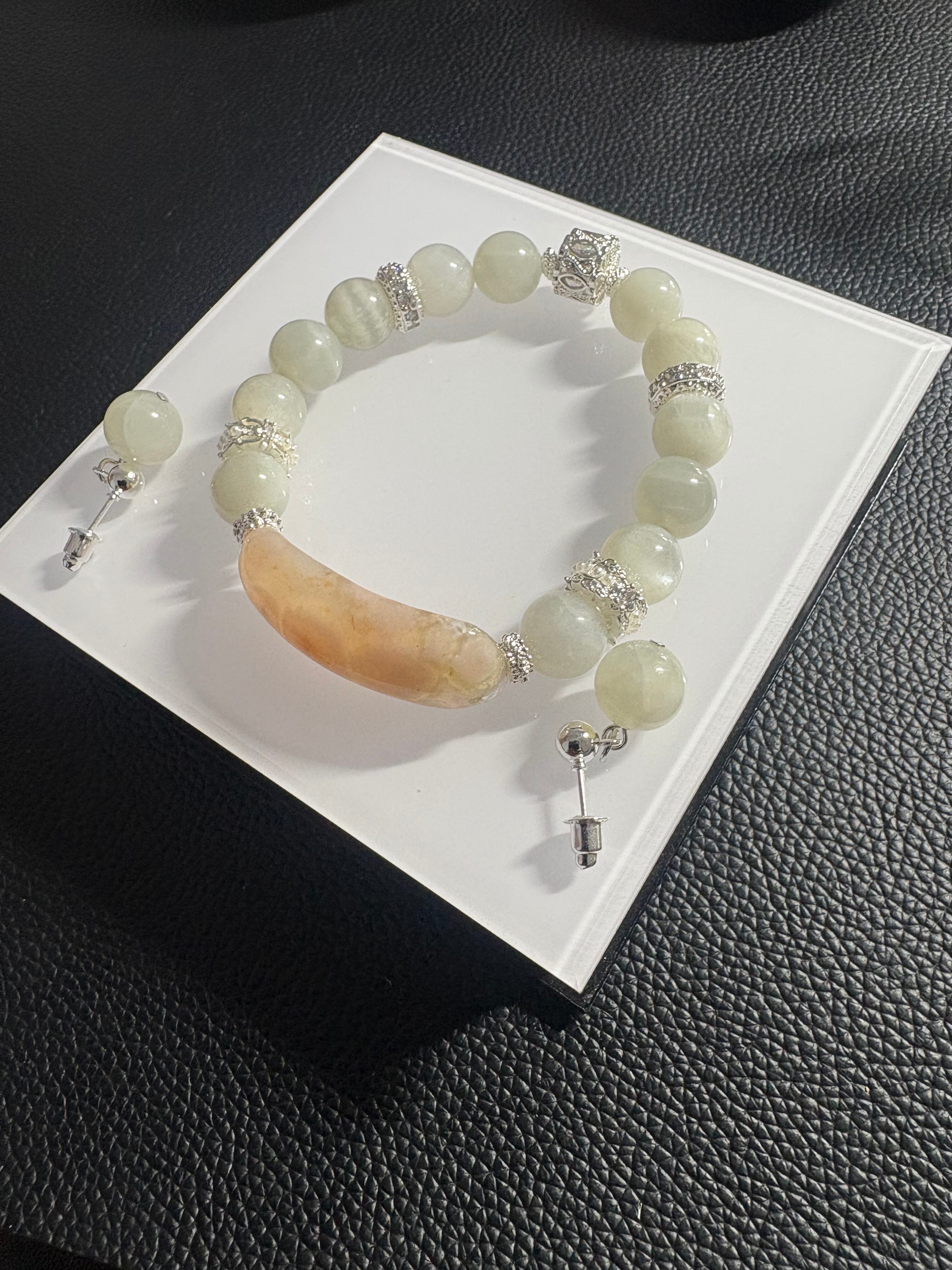 ✨【春の癒し石】桜瑪瑙✖️グリーンモルガナイトデザインブレスレット&ピアス✨ サイズ10.3ミリ 内径15㎝ ※フォローして頂き、10%OFFクーポンをご利用下さい☆
