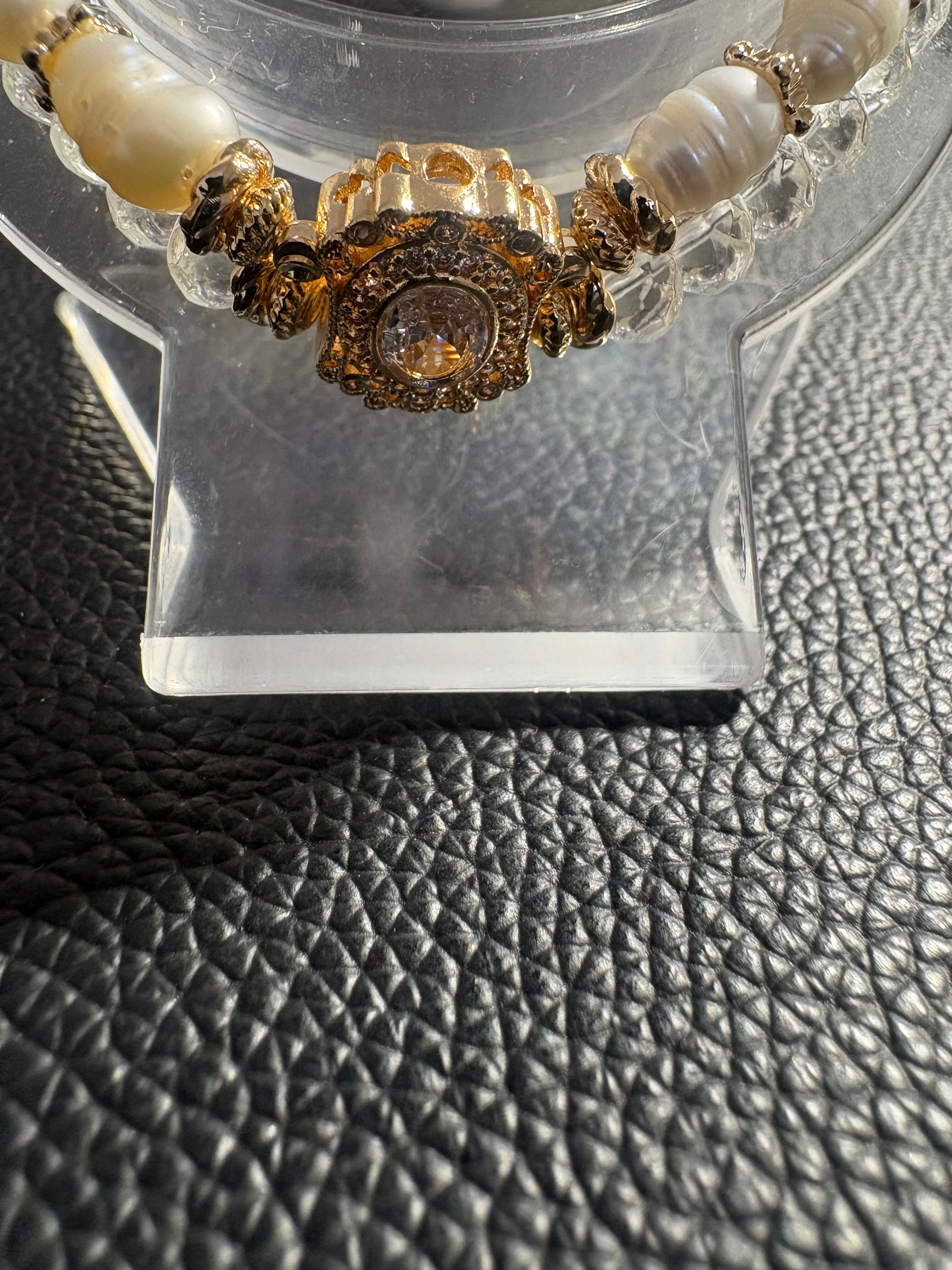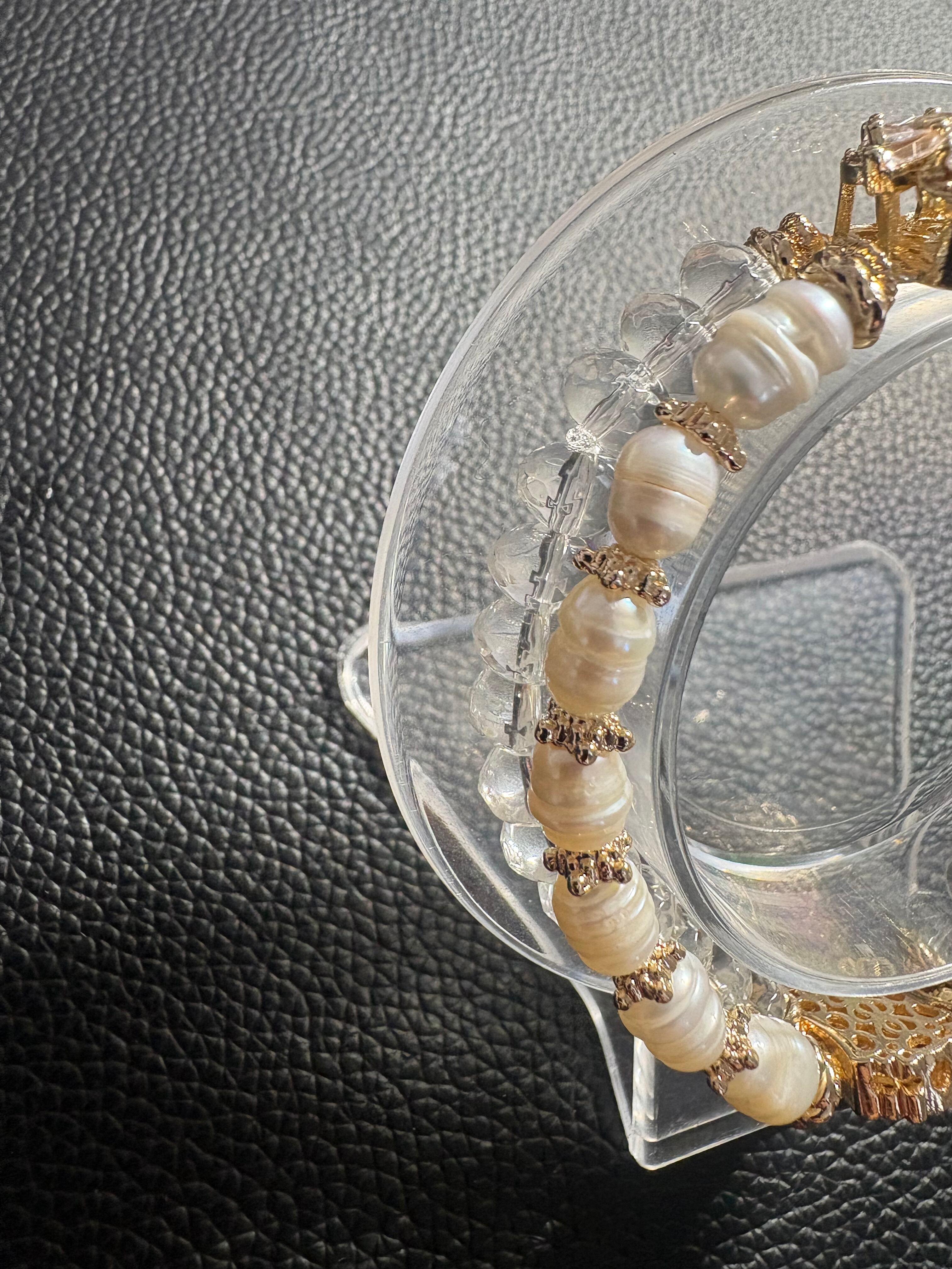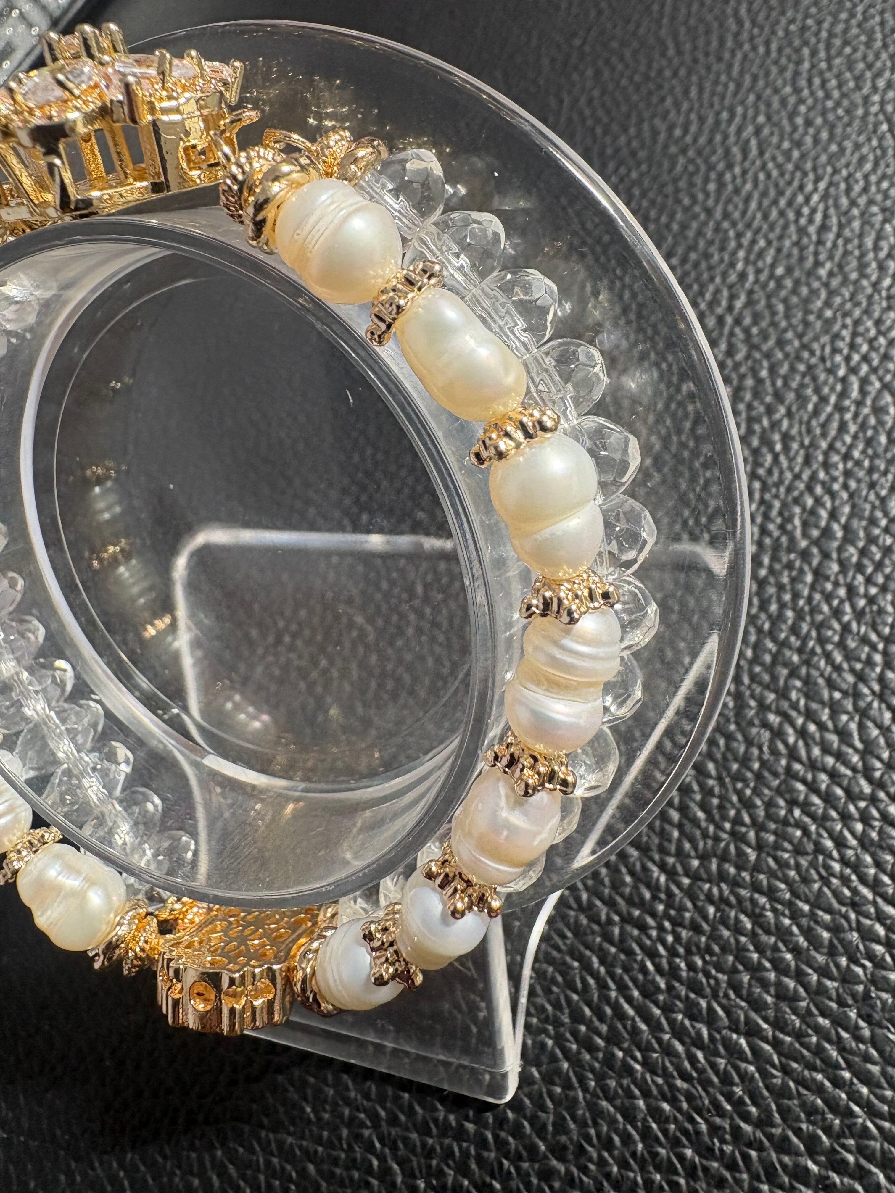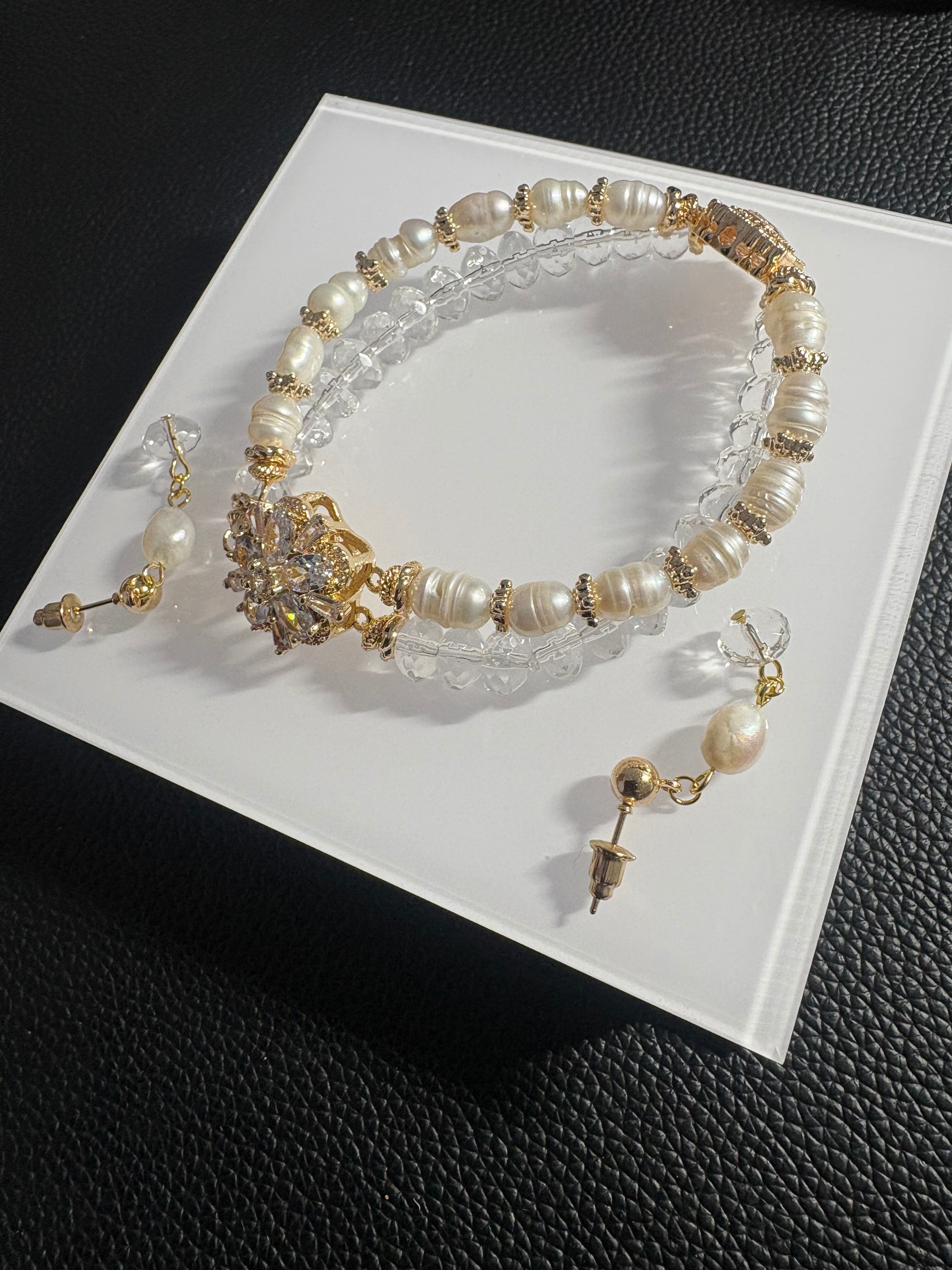 大人可愛い✨クリスタル✖️淡水パールデザインブレスレット&ピアス