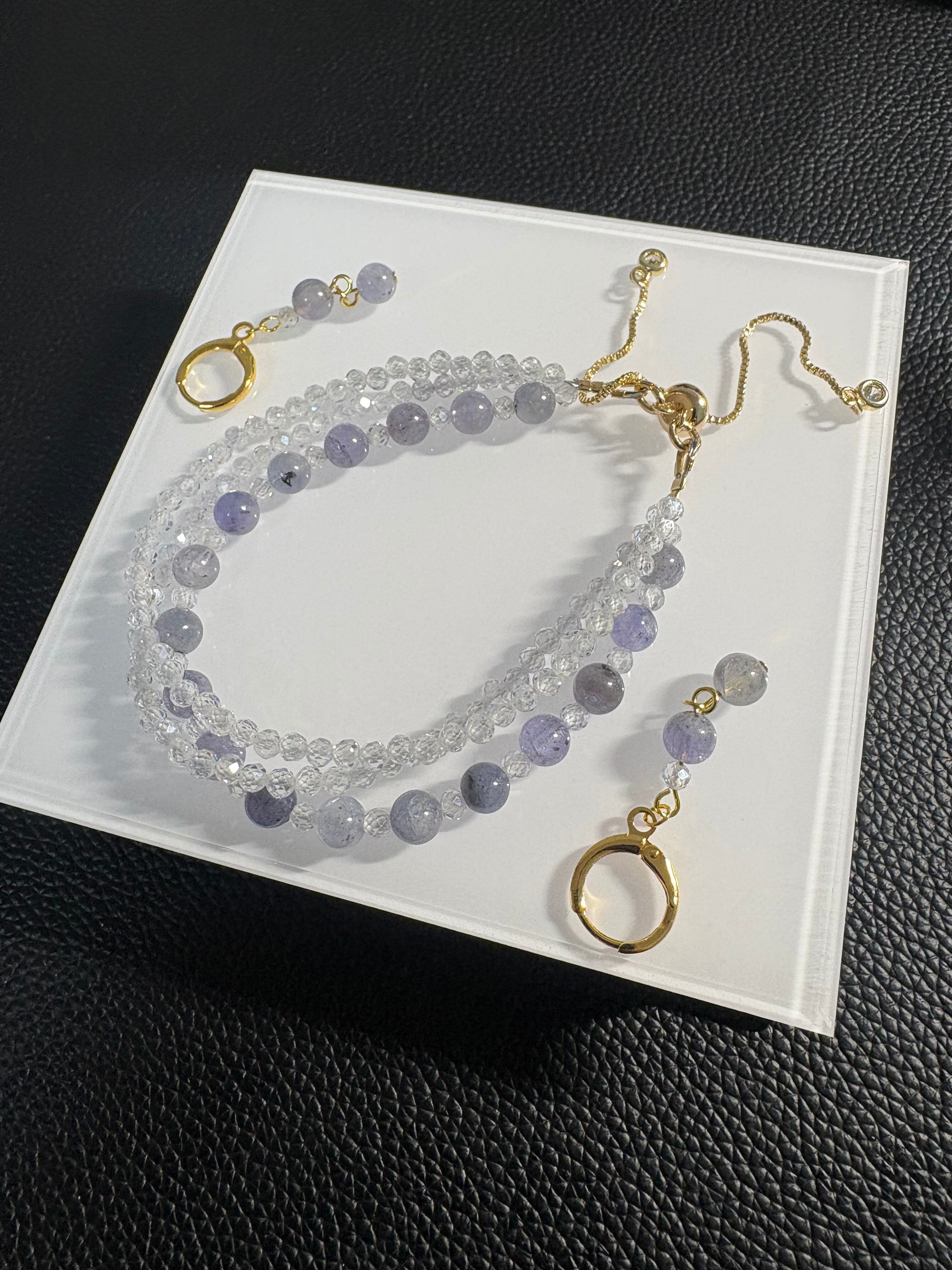 『繊細な輝の重なり✨』タンザナイト✖️カットクリスタル3連ブレスレット&ピアス