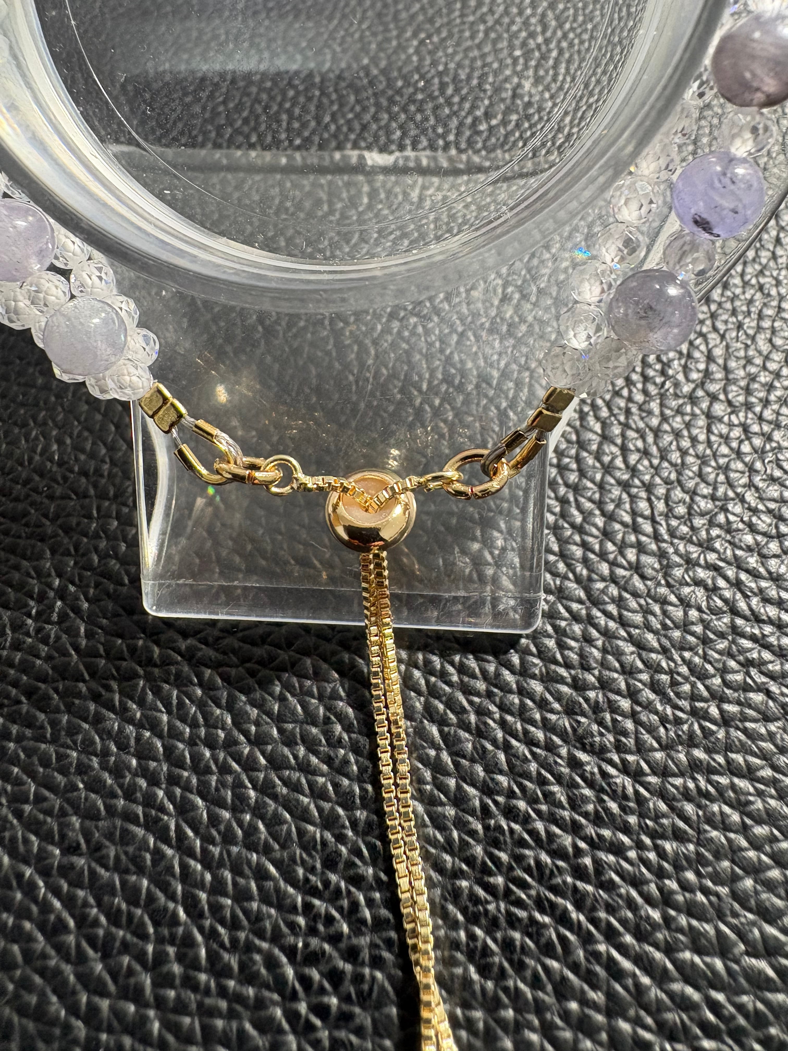 透明感あふれるカットクリスタルのきらめきに、やさしい紫〜ブルーのグラデーションが美しいタンザナイトを合わせた3連デザインブレスレット✨