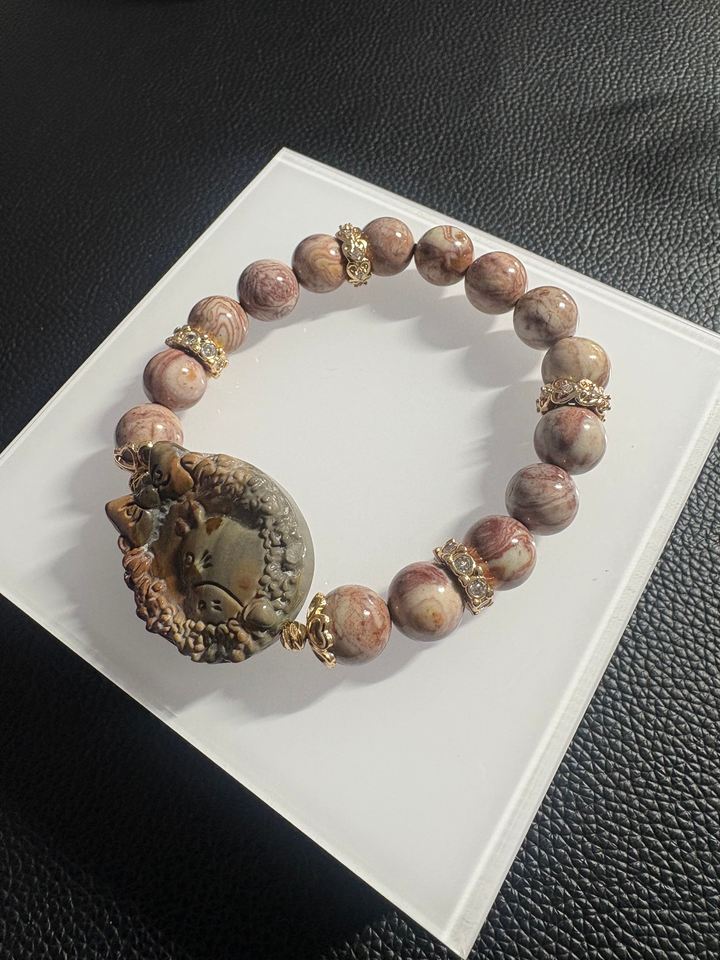 アラシャン瑪瑙デザインブレスレット✨彫刻トップ・一点もの