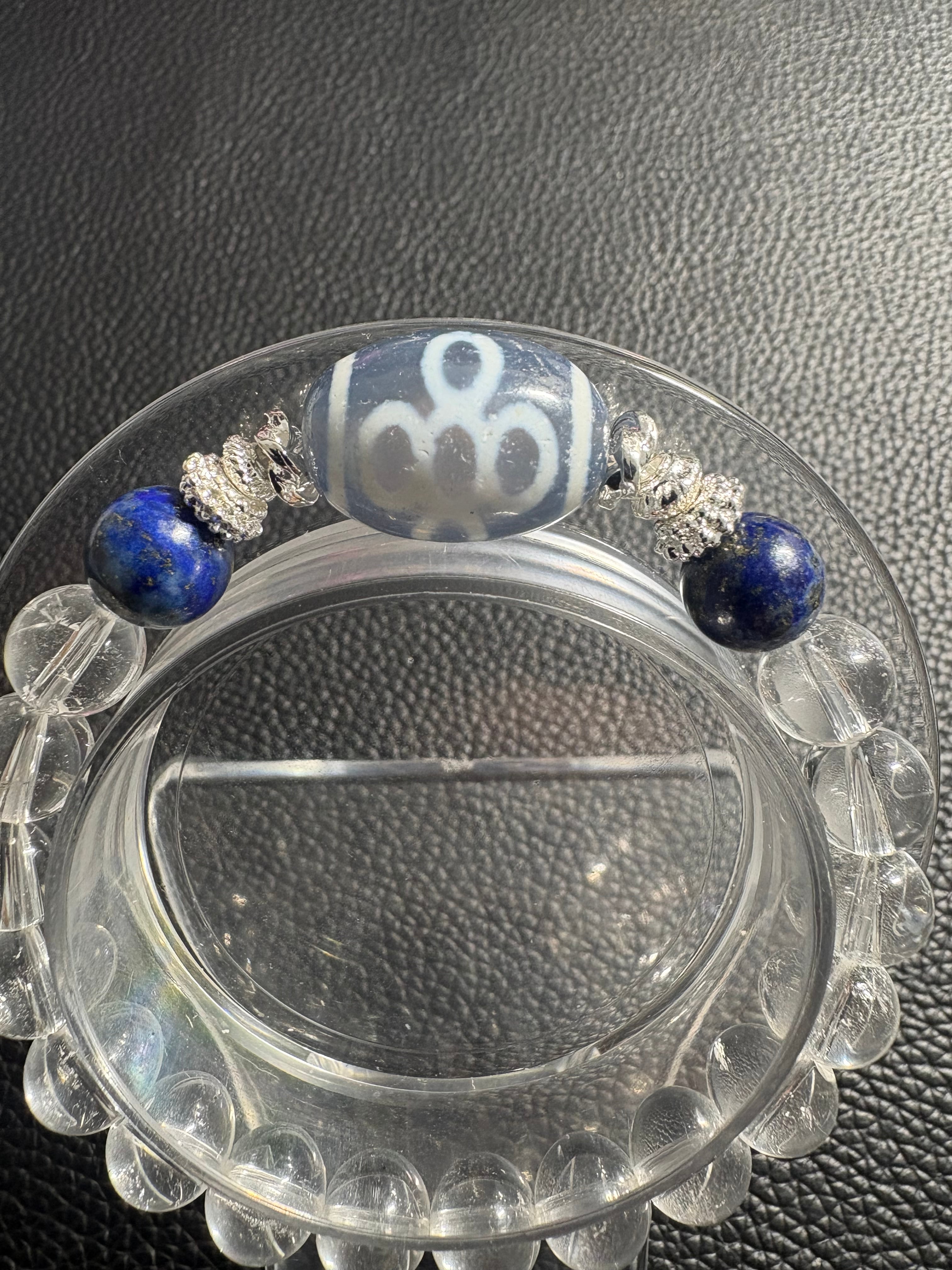 閃電五眼天珠を主役に、ラピスラズリとクリスタルを組み合わせたデザインブレスレット✨