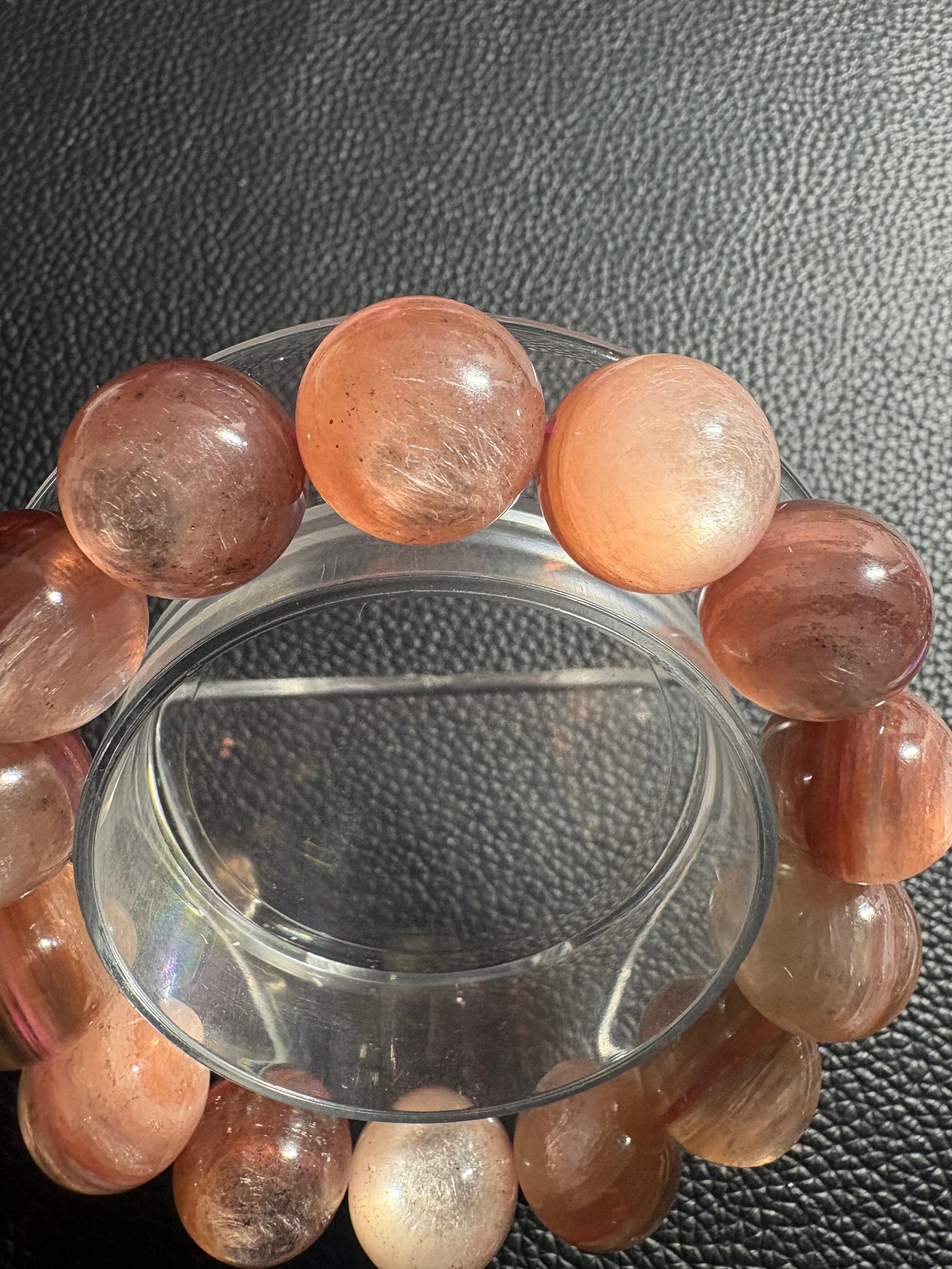 やわらかなピンク〜オレンジのグラデーションに、内側からふんわりと輝くシラーが美しいピンクマイカブレスレット✨