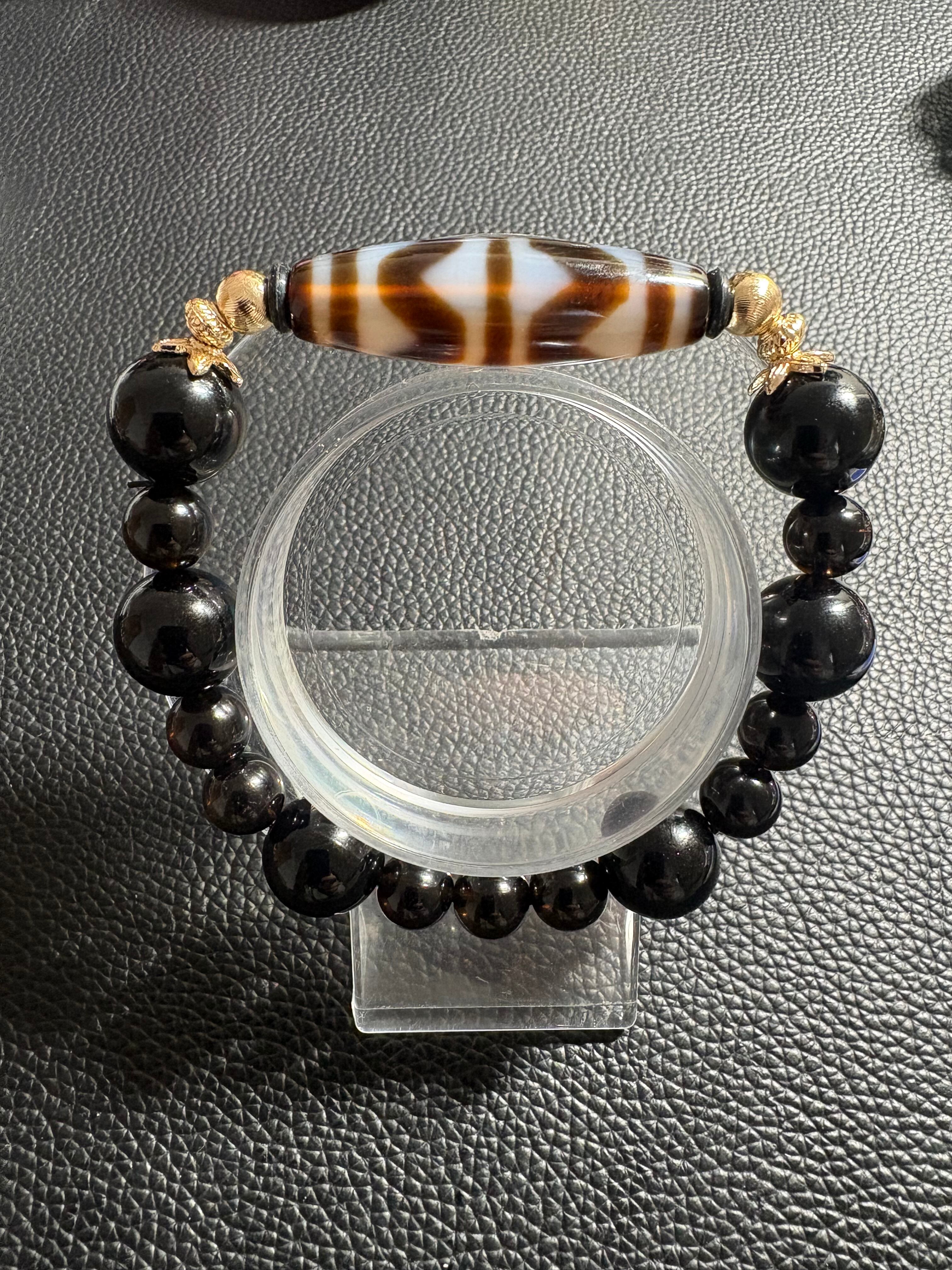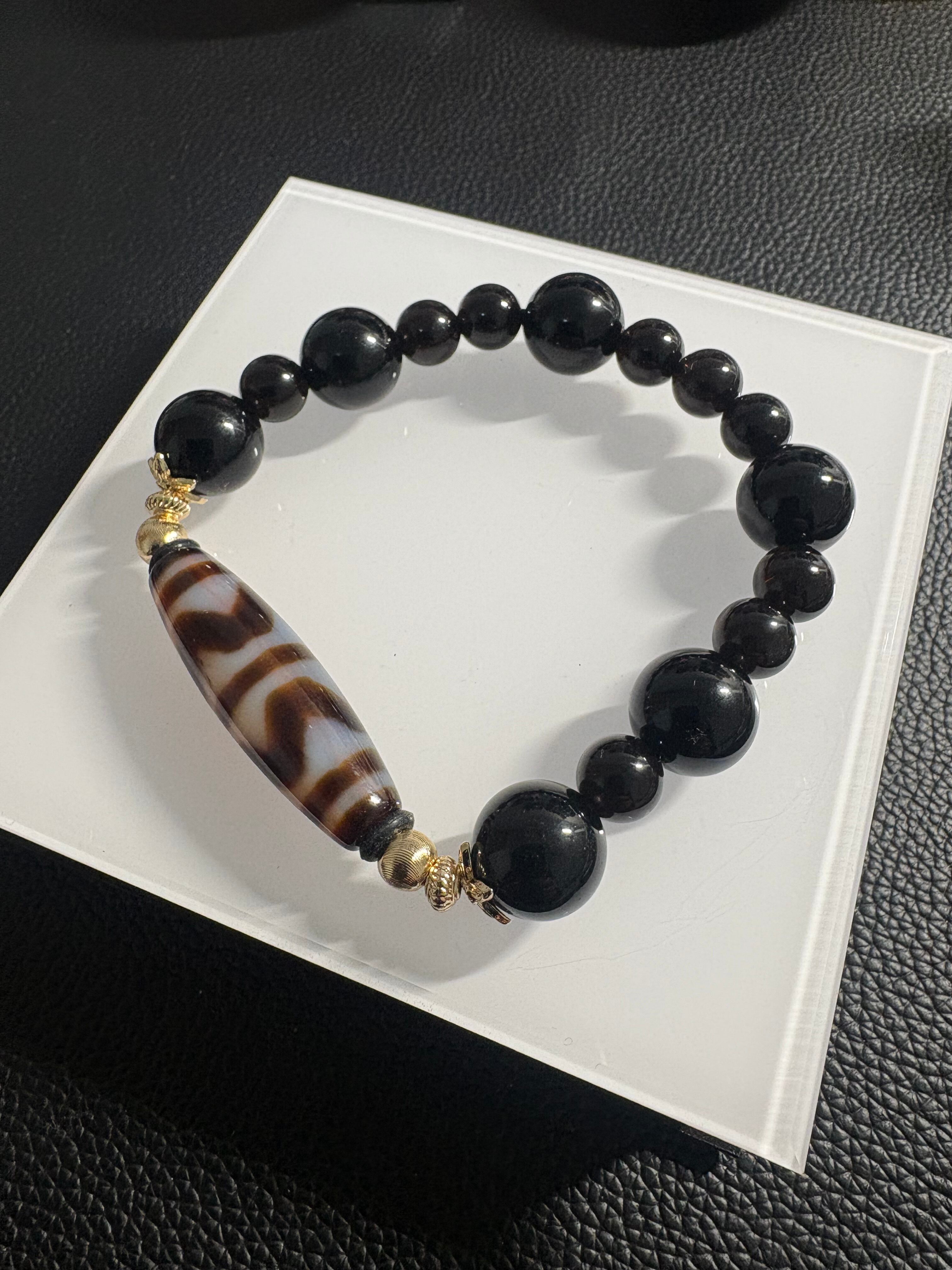 四線虎牙天珠×モリオン|最強守護・厄除けブレスレット