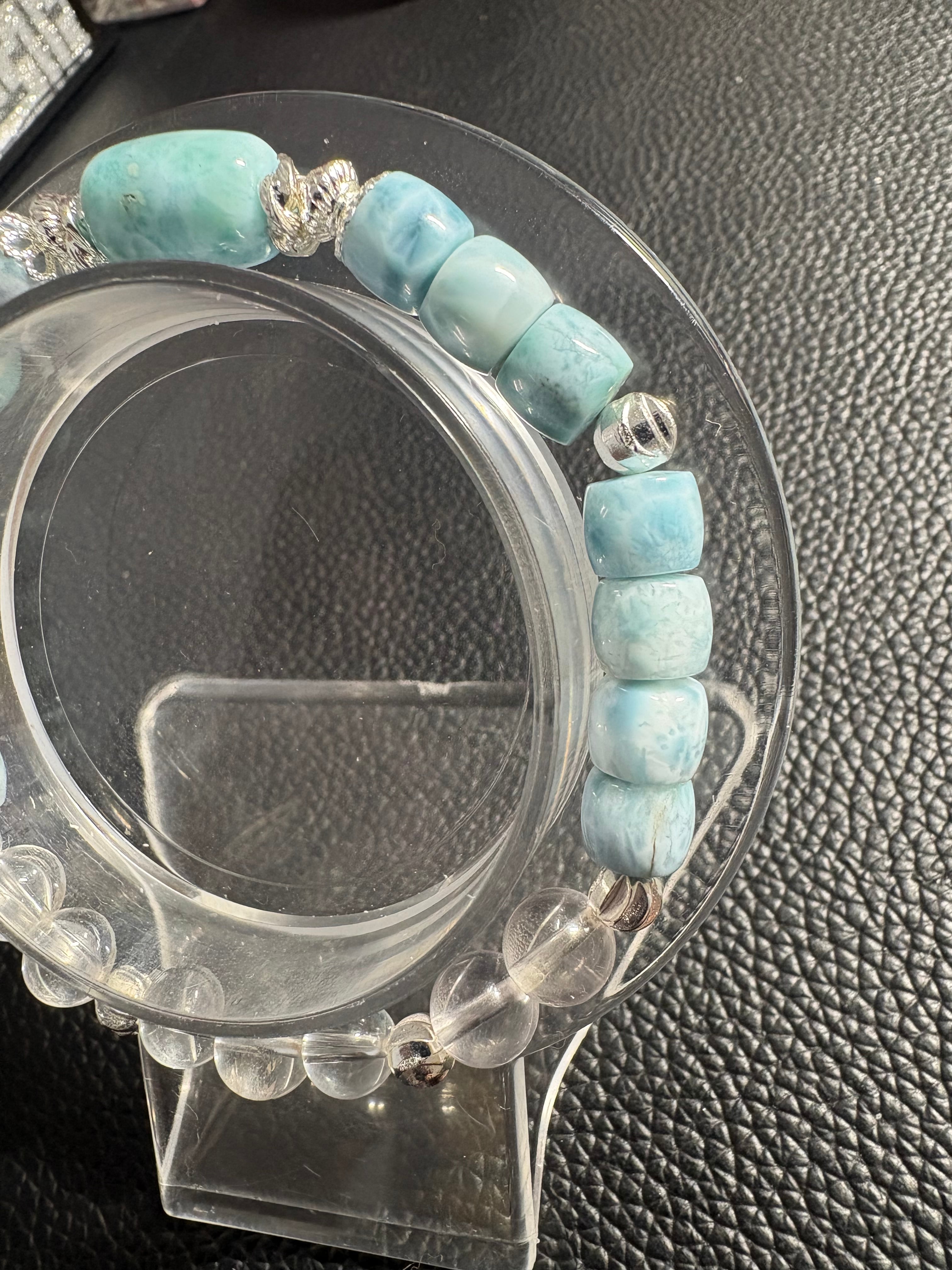 ✨樽型ラリマー✖️クリスタル✨ サイズ7.3ミリ 内径16㎝ ※フォローして頂き、10%OFFクーポンをご利用下さい☆