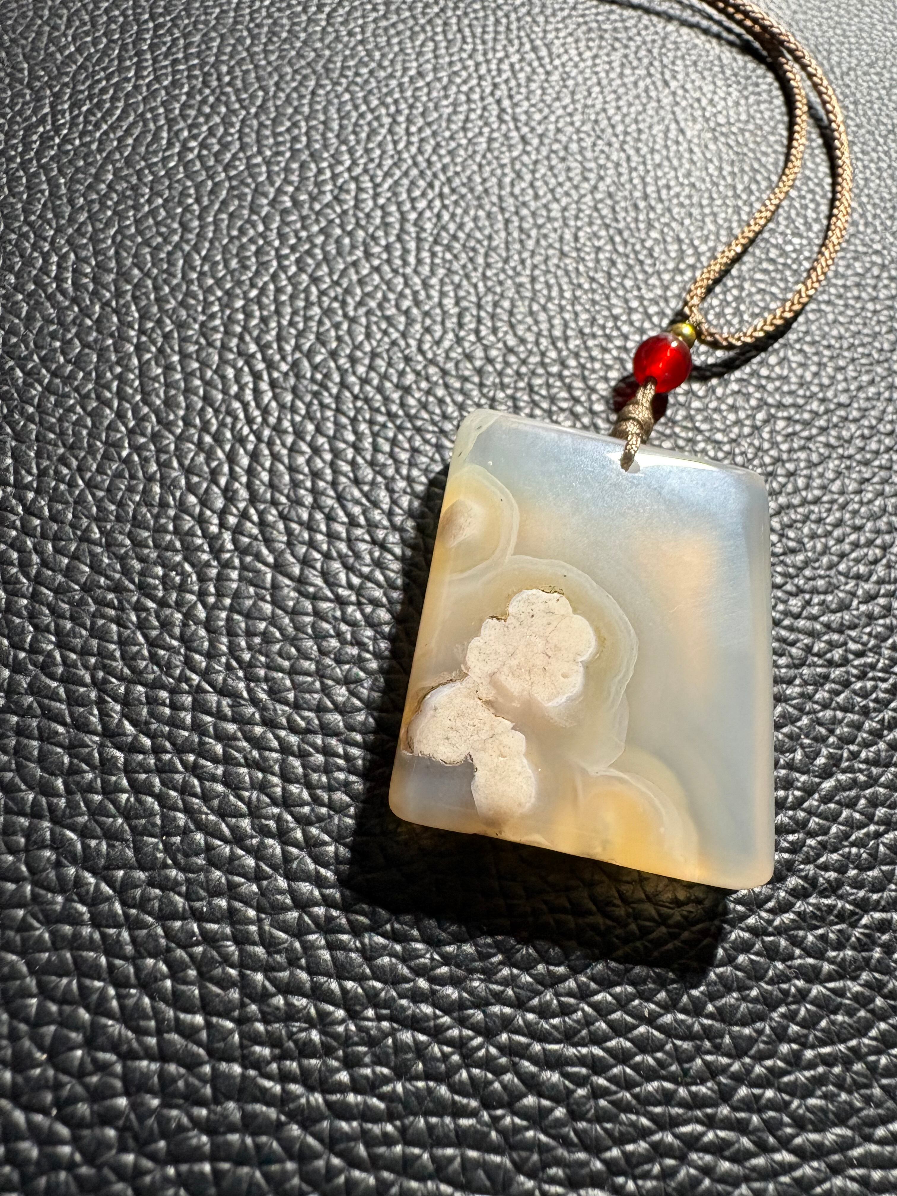 ふんわりと花が咲いたような模様が美しい、桜瑪瑙のペンダントです✨