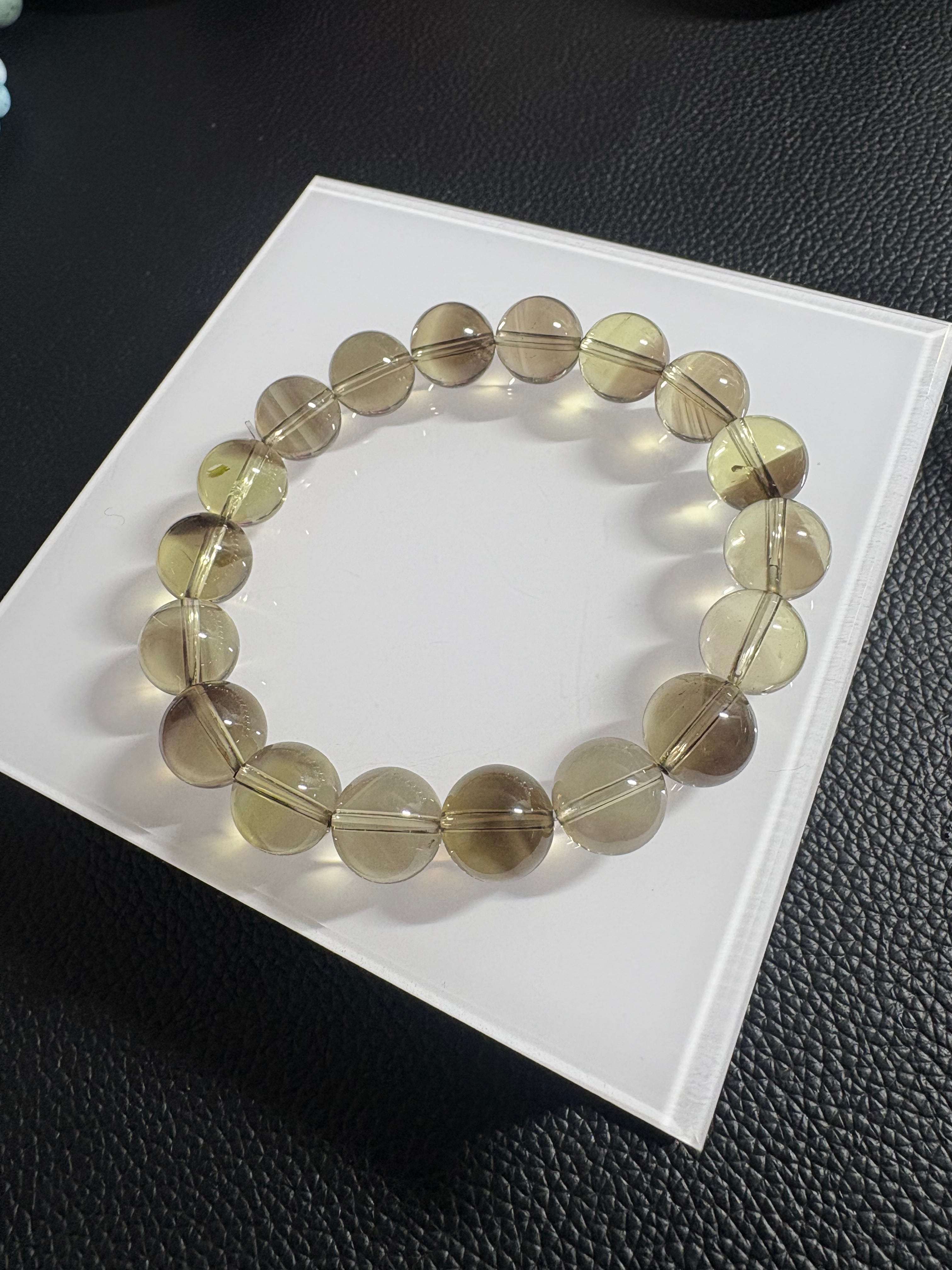 透明感のあるクリアベースに、スモーキーからオリーブカラーへと移ろう美しいグラデーション✨一粒一粒に個性があり、角度によって表情が変わる魅力的なゼウスクォーツブレスレットです✨