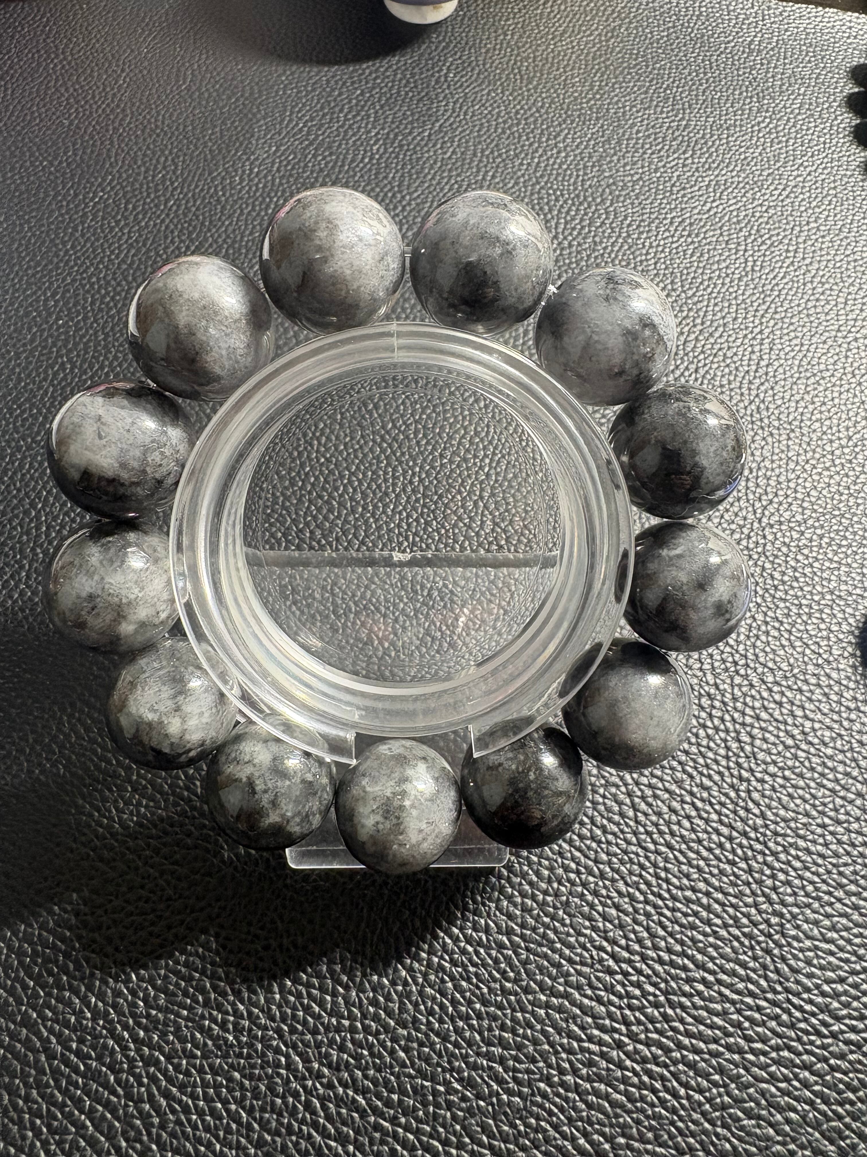 黒一色ではなく、光の加減で浮かび上がるグレーのまだら模様が、奥行きと天然石らしい個性を演出✨艶もしっかりあり、大玉ながら上品さを感じられるバランスの良い一品です✨