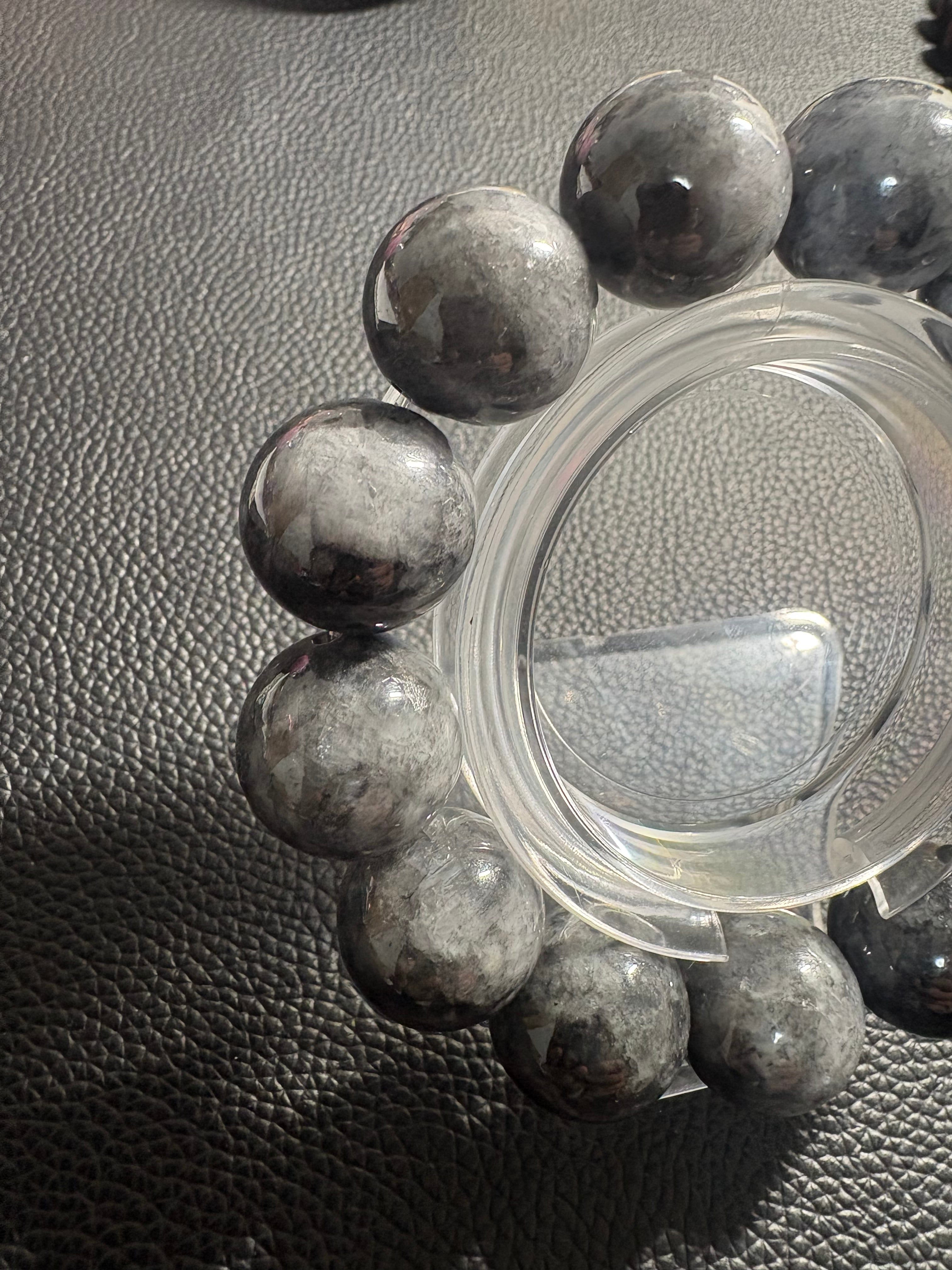 深みのあるブラックに、シルバーグレーの濃淡が美しく広がる、グアテマラ産ブラック翡翠の大玉ブレスレット✨