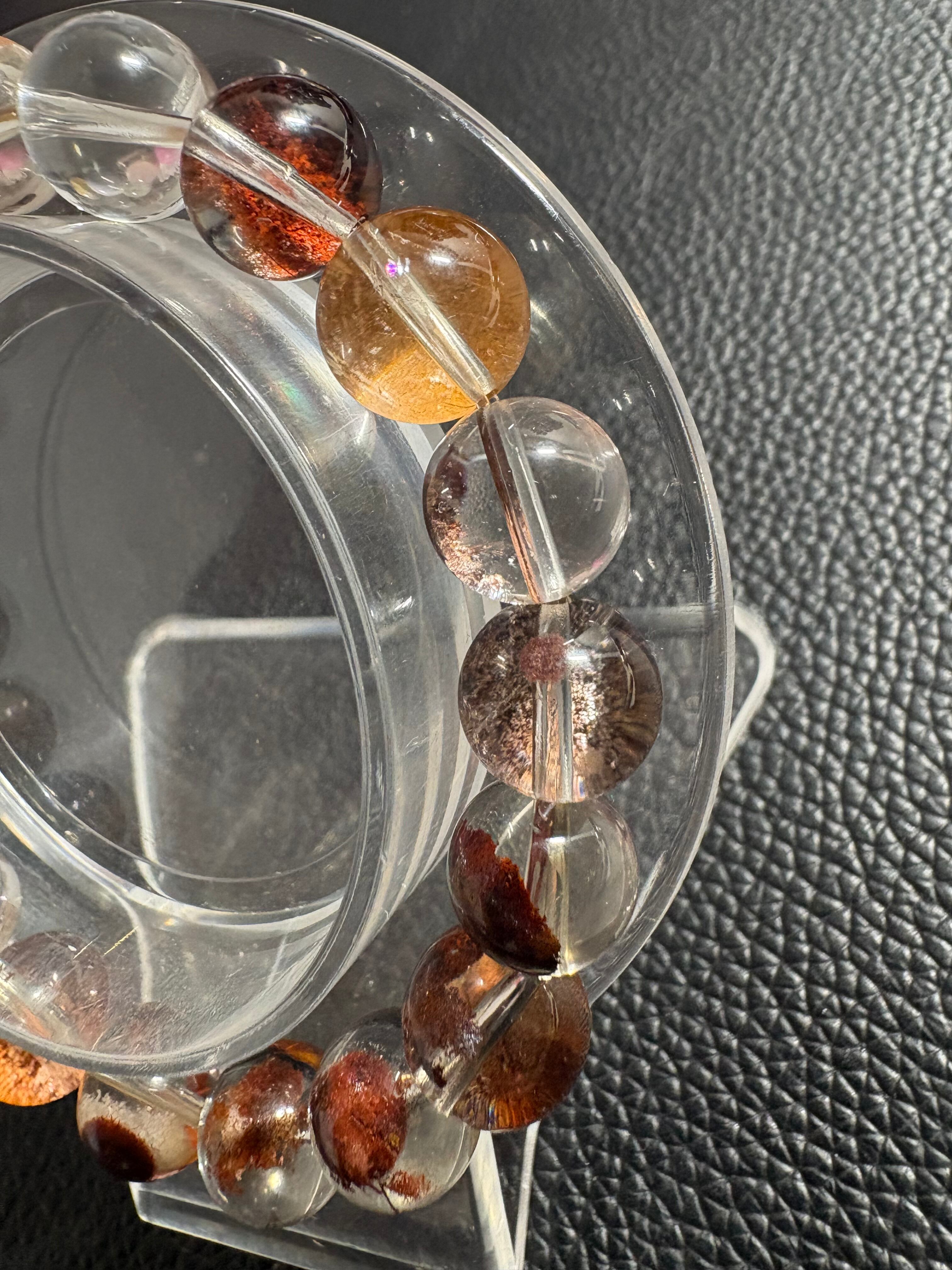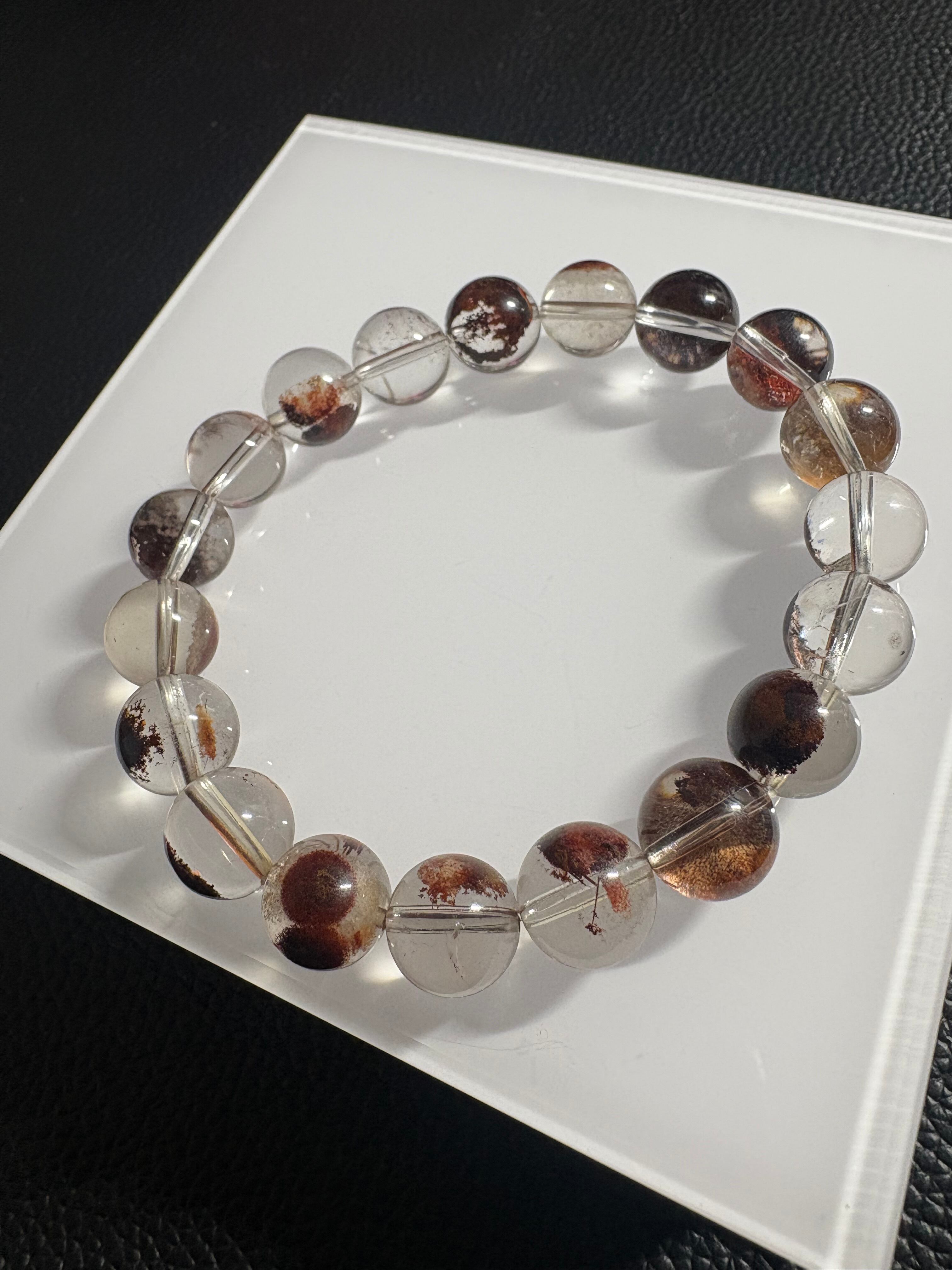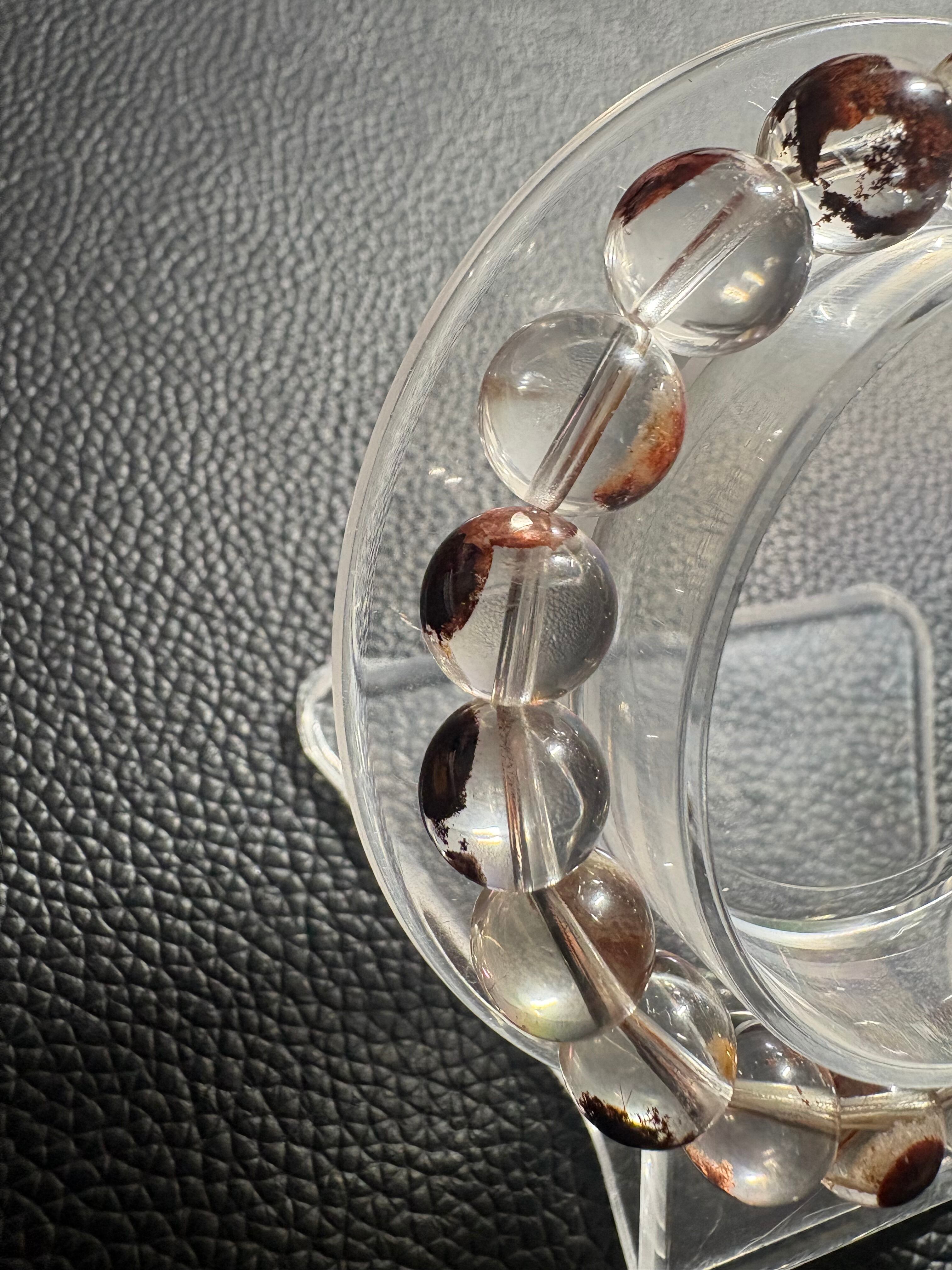 透明感の高い水晶に、ブラウン〜赤茶系の内包物がやさしく広がるガーデンクォーツブレスレット✨一粒一粒に異なる表情があり、まるで小さな自然の風景を閉じ込めたような美しさが魅力です✨